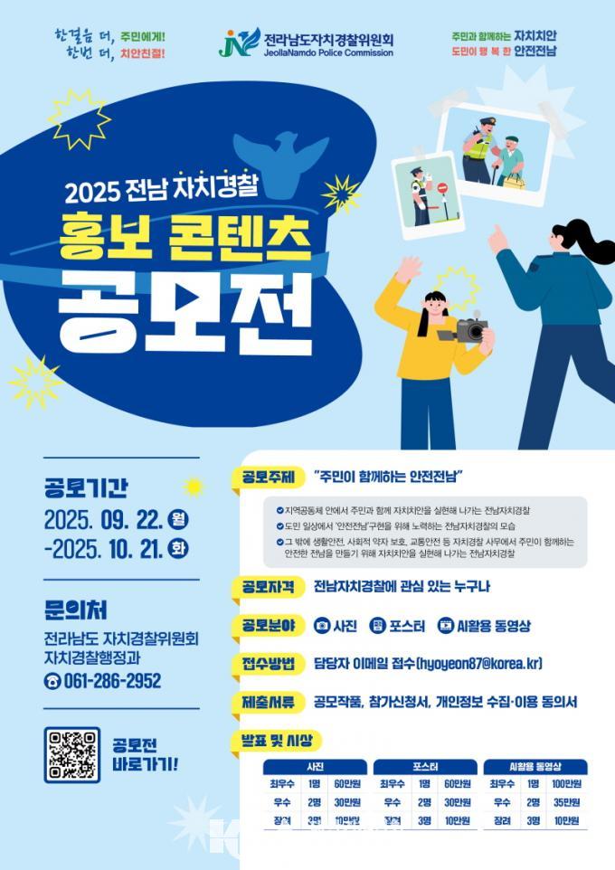 [´ëÇѱâÀÚÇùȸ ±¤ÁÖÀü³²Çùȸ] Àü¶ó³²µµÀÚÄ¡°æÂûÀ§¿øÈ¸´Â Áö¿ª ¸ÂÃã Ä¡¾È¼ºñ½º µîÀ» ¾Ë¸± ¼ö ÀÖ´Â Âü½ÅÇÑ ÄÜÅÙÃ÷¸¦ ¹ß±¼Çϰí Áֹΰú ±ä¹ÐÈ÷ ¼ÒÅëÇϱâ À§ÇÑ ¡®2025 Àü³²ÀÚÄ¡°æÂû È«º¸ ÄÜÅÙÃ÷ °ø¸ðÀü¡¯À» °³ÃÖÇÑ´Ù°í ¹àÇû´Ù.