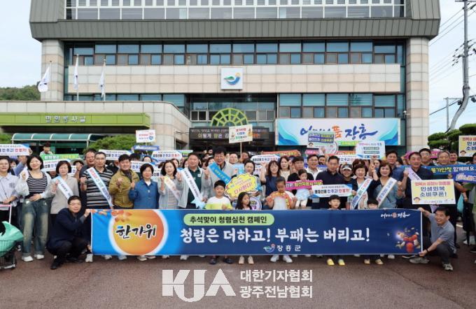 [´ëÇѱâÀÚÇùȸ ÀåÈﱺÁöȸ Á¤¾ç¼® ±âÀÚ] ÀåÈﱺÀº 27ÀÏ Ãß¼® ¸íÀýÀ» ¾ÕµÎ°í Á¤³²Áø ÀåÈï Åä¿ä½ÃÀå ¾Õ¿¡¼ ¡®Ã»·Å ½Çõ Ä·ÆäÀΡ¯À» ÆîÃÆ´Ù.