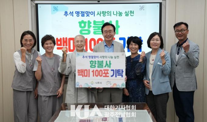 [´ëÇѱâÀÚÇùȸ ³ªÁÖ½ÃÁöȸ ±èÁ¾±Ù ±âÀÚ] Áö¿ª »çÂû ÇâºÒ»ç°¡ Ãß¼® ¸íÀýÀ» ¾ÕµÎ°í ³ªÁֽÿ¡ ¡®»ç¶ûÀÇ ¹é¹Ì¡¯ 100Æ÷(1000kg)¸¦ ±âÅ¹ÇØ Àú¼Òµæ ´ÙÀڳడÁ¤¿¡ µû¶æÇÑ ³ª´®À» ½ÇõÇß´Ù.
