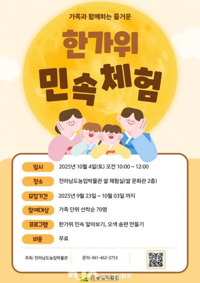 [´ëÇѱâÀÚÇùȸ ±¤ÁÖÀü³²Çùȸ] Àü¶ó³²µµ ³ó¾÷¹Ú¹°°üÀº ´Ù°¡¿À´Â ÇѰ¡À§¸¦ ¸Â¾Æ °¡Á· ´ÜÀ§ °ü¶÷°´ ´ë»óÀ¸·Î ¡®ÇѰ¡À§ ¹Î¼Ó üÇèÇà»ç¡¯¸¦ 10¿ù 4ÀÏ¿¡ °³ÃÖÇÑ´Ù°í ¹àÇû´Ù.