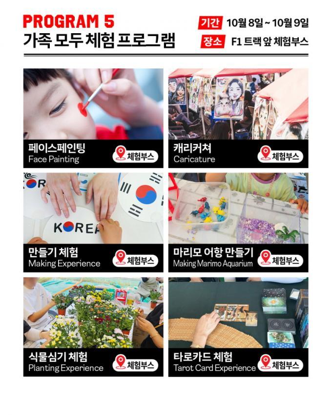 Àڳฦ µ¿¹ÝÇÑ °¡Á·ÀÌ ÇÔ²² Âü¿©ÇÒ ¼ö ÀÖ´Â ÇÁ·Î±×·¥µµ ÁغñµÆ´Ù. ·¹ÀÌ½Ì ½Ã¹Ä·¹ÀÌÅÍ Ã¼Çè, ¸¶¸®¸ð ¾îÇ× ¸¸µé±â, ±¹È¿Í ´ÙÀ°½Ä¹° ½É±â, ÆäÀ̽º ÆäÀÎÆÃ, ij¸®Ä¿Ã³, Ÿ·ÎÄ«µå, ¾ÆÀ̵éÀÇ »ó»ó·ÂÀ» Ű¿öÁÖ´Â ¸¸µé±â üÇè±îÁö ¸ðµÎ ¹«·á·Î ¿î¿µµÈ´Ù.
