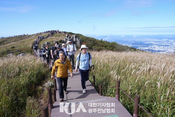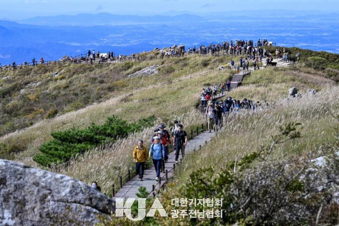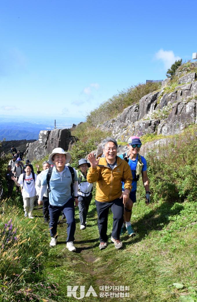 [´ëÇѱâÀÚÇùȸ ±¤ÁÖÀü³²Çùȸ] Ãß¼® ¿¬ÈÞ ¸¶Áö¸· ³¯ÀÎ 9ÀÏ ±¤ÁֽùεéÀº Ưº°ÇÑ ¼±¹°À» ¹Þ¾Ò´Ù. ´Ü ÇϷ縸 Çã¶ôµÈ ¹«µî»ê Á¤»ó °³¹æ¿¡ Ž¹æ°´ 3800¿©¸íÀÇ ¹ß°ÉÀ½ÀÌ À̾îÁ³´Ù. £¾îÁö´Â °¡À»ÀÇ Á¤Ãë ¼Ó, ¹«µî»êÀº ½Ã¹ÎµéÀÇ ¿°¿øÀ¸·Î ´õ¿í ¶ß°Ì°Ô Ÿ¿Ã¶ú´Ù.