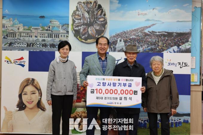 [´ëÇѱâÀÚÇùȸ Áøµµ±ºÁöȸ ¹Ú¿ëÁØ ±âÀÚ] Áøµµ±ºÀº Á¦5´ë °æ±âµµÀÇȸ ÀÇ¿øÀ» Áö³½ ¼³Èñ¼® °æ±âµµÀÇÁ¤È¸ ºÎȸÀåÀÌ ÃÖ±Ù °íÇâ»ç¶û±âºÎ±Ý 1,000¸¸ ¿øÀ» Áøµµ±º¿¡ Àü´ÞÇß´Ù°í ¹àÇû´Ù.