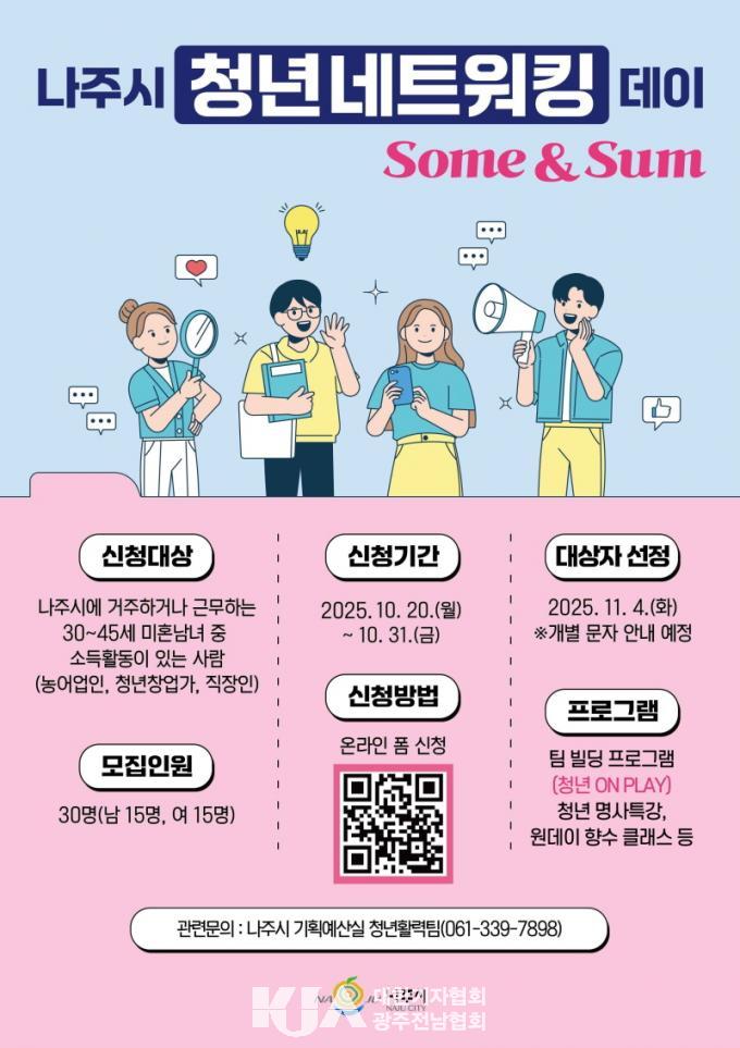 [´ëÇѱâÀÚÇùȸ ³ªÁÖ½ÃÁöȸ ±èÁ¾±Ù ±âÀÚ] ³ªÁֽð¡ Áö¿ª û³âµéÀÇ ±³·ù¿Í ¼ÒÅëÀ» Ȱ¼ºÈ­Çϱâ À§ÇØ ¹Ìȥû³âÀ» ´ë»óÀ¸·Î ÇÑ ¡®Ã»³â ³×Æ®¿öÅ· µ¥ÀÌ¡¯ Âü°¡ÀÚ¸¦ ¸ðÁýÇÑ´Ù.