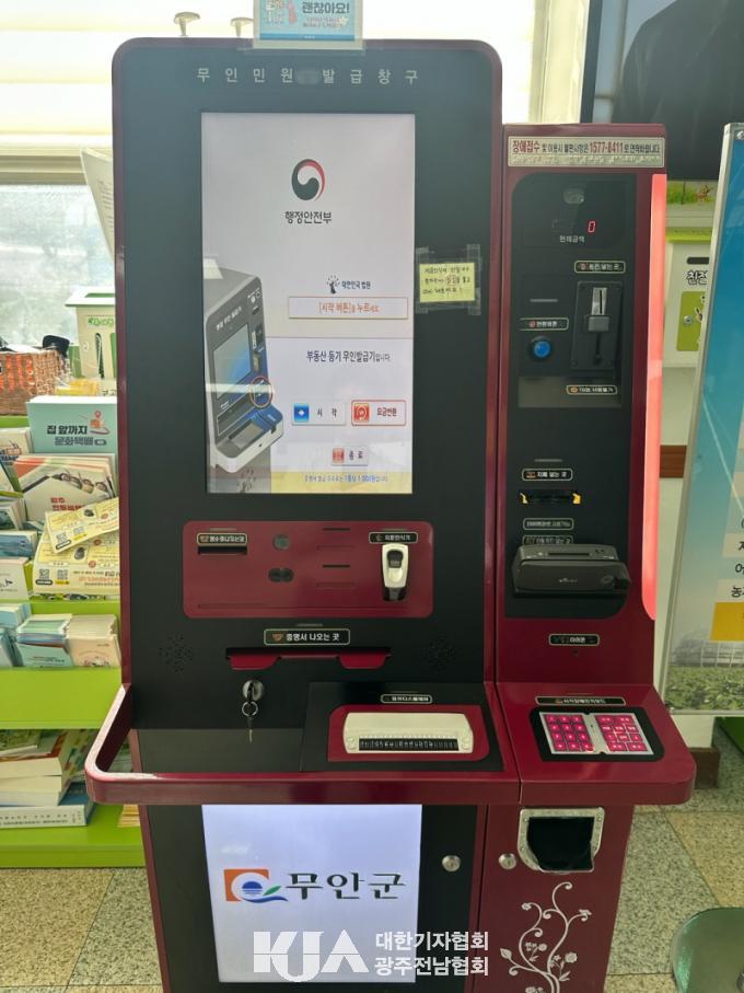 [´ëÇѱâÀÚÇùȸ ¹«¾È±ºÁöȸ ¹ÚÁ¤Èñ ±âÀÚ] ¹«¾È±º(±º¼ö ±è»ê) ¹«¾ÈÀ¾»ç¹«¼Ò¿¡ ¼³Ä¡µÈ ¹«Àιοø¹ß±Þ±â¿¡¼ 23ÀϺÎÅÍ ºÎµ¿»êµî±â»çÇ×Áõ¸í¼ ¹ß±ÞÇÒ ¼ö ÀÖ°Ô µÆ´Ù.