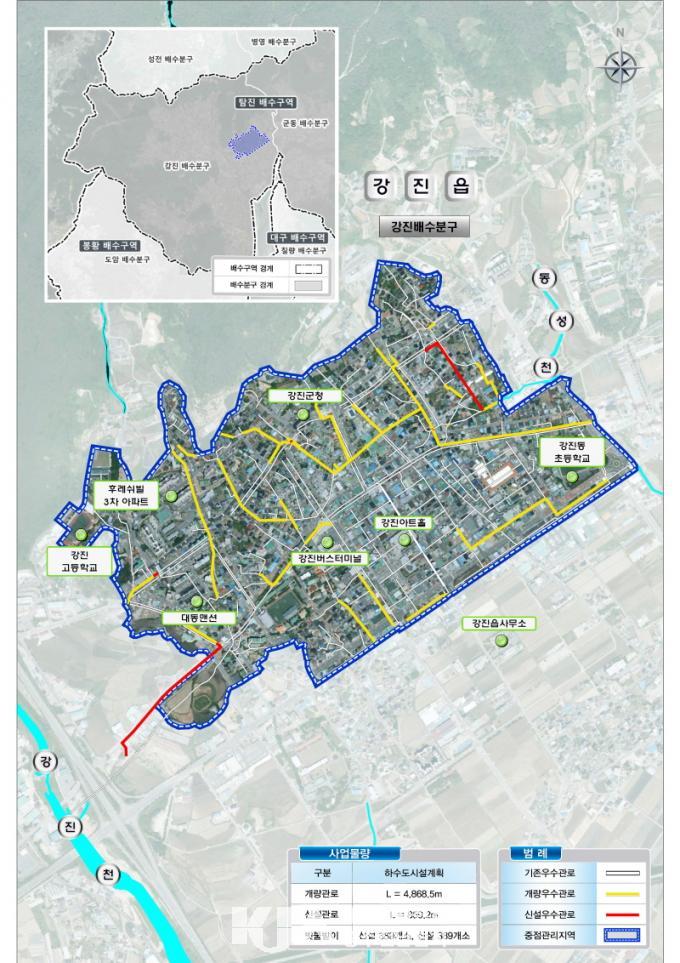 Á¤ºñ ´ë»óÁö´Â °ÁøÀ¾ °Áø¹è¼öºÐ±¸(¼¼º¸®, ³²¼º¸®, µ¿¼º¸®, Æòµ¿¸®) ÀÏ¿øÀ̸ç, ÃÑ»ç¾÷ºñ 360¾ï ¿ø(±¹ºñ 216¾ï ¿ø)À» ÅõÀÔÇØ, ¿ì¼ö°ü·Î ½Å¼³ ¹× °³·® 5.73km¿Í ºø¹°¹ÞÀÌ 778°³¼Ò(±âÁ¸ °³·® 389°³¼Ò, ½Å¼³ 389°³¼Ò)¸¦ Á¤ºñÇÒ °èȹÀÌ´Ù. À̸¦ ÅëÇØ Çϼöµµ Åë¼ö´É·ÂÀ» °ÈÇϰí, »ó½À ħ¼ö ¿øÀÎÀ» ±Ùº»ÀûÀ¸·Î ÇØ°áÇÒ °èȹÀÌ´Ù.
