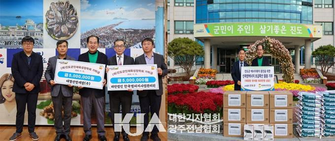 13ÀÏ(¸ñ)¿¡ ÁøÇàµÈ ±âŹ½Ä¿¡¼ ¡ã(Àç)Çѱ¹¿¤ÇÇÁö»ç¾÷°ü¸®¿ø(¿øÀå ¼Õ½ÂÁø) 500¸¸ ¿ø ¡ã¢ß´ë¸í»ê¾÷°³¹ß(´ëÇ¥ Á¤µ¿Áø)ÀÌ 500¸¸ ¿øÀ» Áøµµ±ºÀÎÀçÀ°¼ºÀåÇбÝÀ¸·Î ±âŹÇßÀ¸¸ç, ¡ã(Àç)³ì»ö¿¡³ÊÁö¿¬±¸¿ø(¿øÀå Ȳ±Ôö)Àº Áøµµ±º¹ÎÀÇ ¹ã±æÀ» ¹àÇô Á٠ž籤 º¸¾Èµî 75°³¸¦ ±âºÎÇß´Ù.