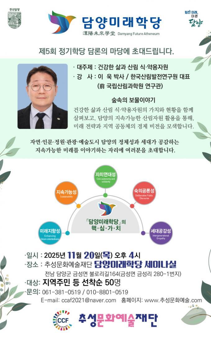 Ãß¼º¹®È­¿¹¼úÀç´Ü ³ªÇ×µµ ÀÌ»çÀåÀº À̹ø Çà»ç¸¦ ÅëÇØ ´ã¾çÀÇ Àι®Àû ±íÀÌ¿Í »ýÅÂÀû ¾ÈÁ¤¼ºÀ» µÇ»õ±â°í, ¼¼´ë°¡ °ø°¨ÇÏ´Â ÀÚ¿¬¡¤Àι®¡¤Á¤¿ø¡¤°ü±¤¡¤¿¹¼úµµ½Ã ´ã¾çÀÇ Á¤Ã¼¼º°ú Áö¼Ó°¡´É¼ºÀ» ¸ð»öÇÏ´Â ÀÚ¸®°¡ µÉ °ÍÀ¸·Î ±â´ëÇϰí ÀÖ´Ù. ƯÈ÷, »ê¸² ÀÚ¿øÀÇ º¸¹°ÀÚ¿øÈ­¿Í Áö¿ª °øµ¿Ã¼ÀÇ °æÁ¦ ºñÀü âÃâ ¹æ¾ÈÀ» ÇÔ²² ³íÀÇÇÏ¸ç ´ã¾çÀÇ »õ·Î¿î ¹Ì·¡ Àü·«À» Á¦½ÃÇÒ ¿¹Á¤ÀÌ´Ù.