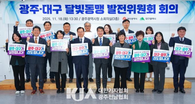 [´ëÇѱâÀÚÇùȸ ±¤ÁÖÀü³²Çùȸ] ±¤ÁÖ±¤¿ª½Ã¿Í ´ë±¸±¤¿ª½Ã°¡ 18ÀÏ ½Ãû 3Ãþ ¼ÒȸÀǽǿ¡¼ ¡®±¤ÁÖ¡¤´ë±¸ ´Þºûµ¿¸Í ¹ßÀüÀ§¿øÈ¸¡¯¸¦ ¿¾î µÎ µµ½Ã °£ ½ÇÁúÀûÀÎ Çù·Â °È ¹æ¾ÈÀ» ³íÀÇÇß´Ù.