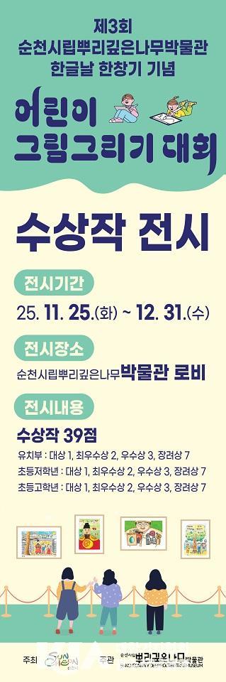 | ¼øÃµ½Ã¸³»Ñ¸®±íÀº³ª¹«¹Ú¹°°ü, <Á¦3ȸ Çѱ۳¯ ÇÑâ±â ±â³ä ¾î¸°ÀÌ ±×¸²±×¸®±â ´ëȸ ¼ö»óÀÛ Àü½Ãȸ> °³ÃÖ ´ëȸ ¼ö»óÀÛ 39°³ ÀÛǰ Àü½Ã, 12¿ù 31ÀϱîÁö ÁøÇà |