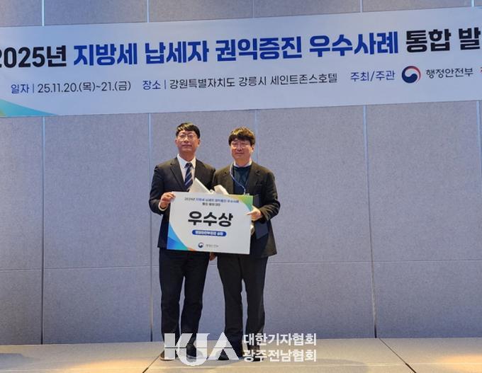 [´ëÇѱâÀÚÇùȸ ±¤¾ç½ÃÁöȸ] ±¤¾ç½Ã(½ÃÀå Á¤ÀÎÈ)°¡ ÇàÁ¤¾ÈÀüºÎ°¡ ÁÖÃÖÇÑ ¡®2025³âµµ Áö¹æ¼¼ ³³¼¼ÀÚ±ÇÀÍÁõÁø ¿ì¼ö»ç·Ê ÅëÇÕ ¹ßÇ¥´ëȸ¡¯¿¡¼ ÇàÁ¤¾ÈÀüºÎÀå°ü»óÀÎ ¿ì¼ö»óÀ» ¼ö»óÇß´Ù.