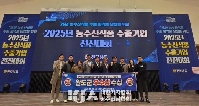 [´ëÇѱâÀÚÇùȸ ¿Ïµµ±ºÁöȸ] ¿Ïµµ±ºÀº Áö³ 11¿ù 28ÀÏ Àü³² ¹«¾È±º¿¡¼ ¿¸° ¡¸2025³â Àü³² ³ó¼ö»ê½Äǰ ¼öÃâ ¿ì¼ö ½Ã±º Æò°¡¡¹¿¡¼ 22°³ ½Ã±º Áß ¿ì¼ö»óÀ» ¼ö»óÇß´Ù.