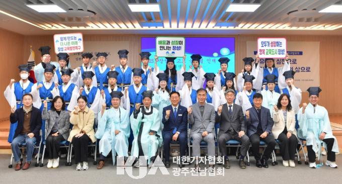 À̳¯ Á¹¾÷½Ä¿¡¼± ¡®°í±³ ±Û·Î¹ú ÀÎÀç Ä·ÇÁ¡¯ Âü¿© ÇлýµéÀÌ ±×°£ÀÇ È°µ¿ °á°ú¸¦ µ¹¾Æº¸°í, ¼º°ú¸¦ °øÀ¯Çß´Ù. Á¹¾÷Áõ¼ ¼ö¿©¿Í ÇÔ²² ÁøÇàµÈ ¡®¼¼Ã¥·Ê(á©óüÖÉ)¡¯ ½Ã°£¿¡´Â Á¹¾÷»ýµéÀÌ Çкθð¿Í ½º½Â¿¡°Ô Å«ÀýÀ» ¿Ã·Á ¹Ú¼ö¸¦ ¹Þ¾Ò´Ù. ¡®¼¼Ã¥·Ê¡¯´Â ÇÑ ±ÇÀÇ Ã¥À» ´Ù ¹è¿î µÚ ½º½Â°ú µ¿·áµé¿¡°Ô ¶± µîÀ» ´ëÁ¢ÇÏ´Â ÀüÅë ¿¹ÀýÀ» ¸»ÇÑ´Ù.
