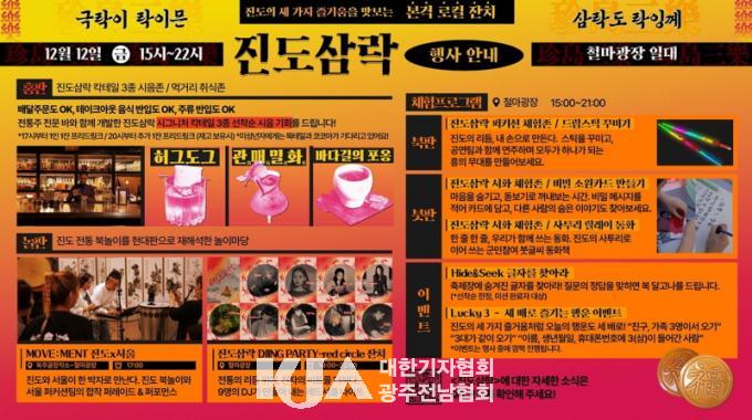 À̹ø Çà»ç´Â ÁøµµÀÇ ¼¼ °¡Áö Áñ°Å¿ò(»ï¶ô)ÀÎ ºÏ(ÍÕ), ÇÊ(ù¶), È«(ûõ)À» ÁÖÁ¦·Î ÁøµµÀÇ ÀüÅ빮ȸ¦ Çö´ëÀûÀ¸·Î Ç®¾î³»¸ç ¸ðµÎ°¡ ÇÔ²² Áñ±â´Â üÇèÇü ÃàÁ¦·Î ±âȹÇß°í, ÇàÁ¤¾ÈÀüºÎÀÇ ¡®»ýȰ±Ç ´ÜÀ§ ·ÎÄú귣µù Ȱ¼ºÈ »ç¾÷¡¯ÀÇ Çϳª·Î ÃßÁøµÈ´Ù.