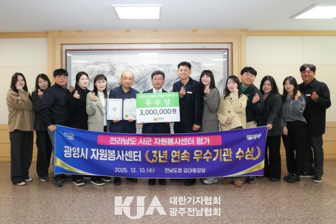 ±¤¾ç½Ã, Àü¶ó³²µµ ÀÚ¿øºÀ»ç¼¾ÅÍ Æò°¡ ¡®3³â ¿¬¼Ó ¿ì¼ö±â°ü¡¯¼±Á¤