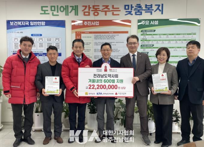 [´ëÇѱâÀÚÇùȸ ±¤ÁÖÀü³²Çùȸ] Àü¶ó³²µµ´Â 23ÀÏ Àü³²µµ¾à»çȸ·ÎºÎÅÍ ³ëÀκ¹Áö½Ã¼³°ú µ¹º½ ¾î¸£½Å¿¡°Ô Àü´ÞÇÒ 2õ200¸¸ ¿ø »ó´çÀÇ °Ü¿ï ³»ÀÇ 600¹úÀ» ±âŹ¹Þ¾Æ »çȸº¹Áö°øµ¿¸ð±Ýȸ¿¡ Àü´ÞÇß´Ù°í ¹àÇû´Ù.