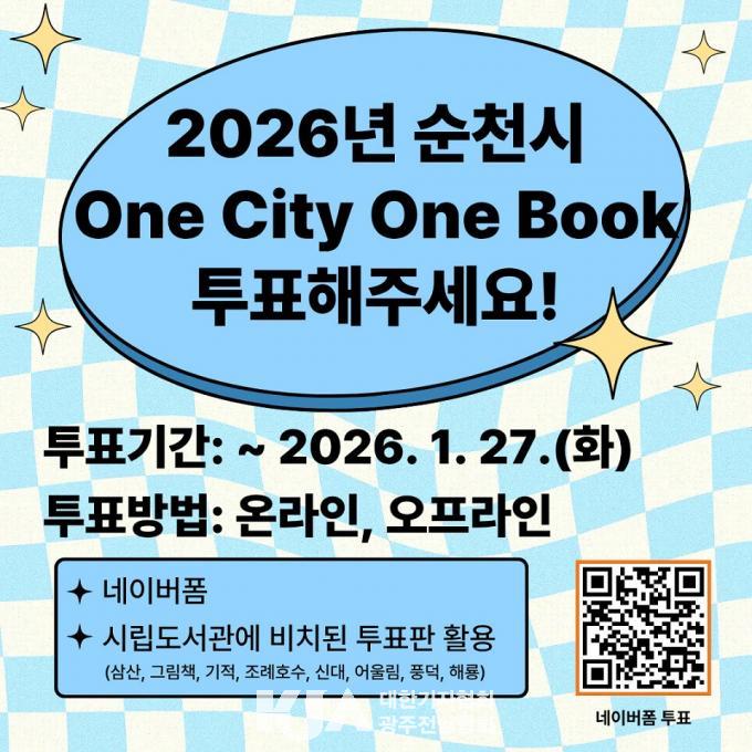 | ¼øÃµ½Ã, 2026³â One City One Book ½Ã¹Î ÅõÇ¥ ÁøÇà ¿Â¶óÀÎ ¹× ¿ÀÇÁ¶óÀÎ(¼øÃµ½Ã¸³µµ¼°ü)¿¡¼ ½Ã¹ÎµéÀÌ ÇÔ²² ÀÐÀ» Ã¥ ÅõÇ¥ Âü¿© |