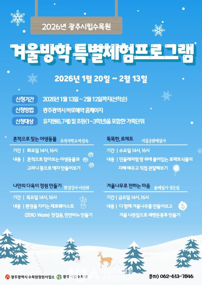 | ±¤Áֽø³¼ö¸ñ¿ø, °Ü¿ï¹æÇРüÇèÇÁ·Î±×·¥ ¿î¿µ 13ÀϺÎÅÍ ¾î¸°ÀÌ °¡Á· 640¸í ¼±Âø¼ø ¸ðÁý¡¦»ýÅÂÇнÀ µî 4Á¾ ÁøÇà |