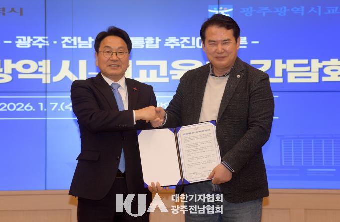 ±¤ÁÖ±¤¿ª½Ã(½ÃÀå °±âÁ¤)¿Í ±¤ÁÖ±¤¿ª½Ã±³À°Ã»(±³À°°¨ ÀÌÁ¤¼±)Àº 7ÀÏ ¿ÀÈÄ 3½Ã ½Ãû ºñÁî´Ï½º·ë¿¡¼ °£´ãȸ¸¦ ¿¾î ¡®±¤ÁÖ¡¤Àü³² ÇàÁ¤ÅëÇÕ¡¯ ÃßÁø¿¡ µû¸¥ ¡®±³À°ÅëÇÕ¡¯ÀÇ Çʿ伺À» °øÀ¯Çϰí, ÇâÈÄ Á¦Á¤µÉ Ưº°¹ý¾È¿¡ ´ã±æ ±³À° ºÐ¾ß ÁÖ¿ä Çö¾È¿¡ ´ëÇØ ³íÀÇÇß´Ù.