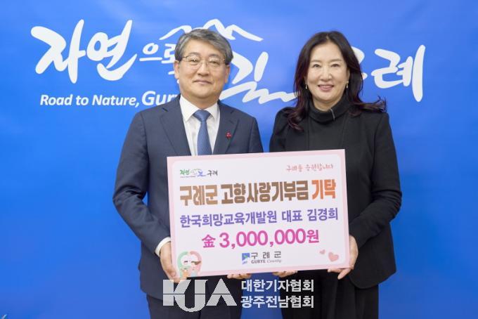 [´ëÇѱâÀÚÇùȸ ±¸·Ê±ºÁöȸ ±èÁ¤¿Á ±âÀÚ] ±¸·Ê±ºÀº Áö³ 15ÀÏ Çѱ¹Èñ¸Á±³À°°³¹ß¿ø ±è°æÈñ ´ëÇ¥°¡ °íÇâ»ç¶û±âºÎ±Ý 300¸¸¿øÀ» ±¸·Ê±º¿¡ ±âŹÇÏ¿´´Ù°í ¹àÇû´Ù.