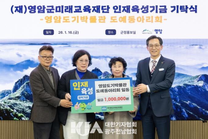 µÎ ÇлýÀº Áö¿ª»çȸÀÇ µµ¿ò¿¡ º¸´äÇϱâ À§ÇØ À̹ø ÀåÇбÝÀ» ¾Æ¸£¹ÙÀÌÆ®·Î ¸¶·ÃÇß´Ù. Á¶ ȸÀåÀº Áö³­ÇØ ¿µ¾Ï±ºÀÇ ¡®2025³â Çõ½ÅÁ¤Ã¥ Æä½ºÆ¼¹ú¡¯ ¹Ì¾Ï¸é ´ëÇ¥ ¹ßÇ¥ÀÚ·Î ³ª¼­ ±Ý»óÀ» ¼ö»óÇØ ¹ÞÀº ºÎ»ó±Ý Àü¾×À» ±âºÎÇØ Àǹ̸¦ ´õÇß´Ù. ÀÌ¿¡ ¾Õ¼± 16ÀÏ ¿µ¾Ïµµ±â¹Ú¹°°ü µµ¿¹µ¿¾Æ¸®È¸ ȸ¿øµéµµ Áö¿ª ÀÎÀç À°¼º ÀåÇбâ±Ý 100¸¸¿øÀ» ±âºÎÇß´Ù.