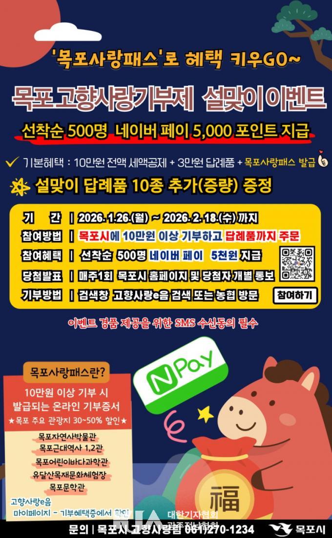 À̺¥Æ® °ü·Ã ÀÚ¼¼ÇÑ »çÇ×Àº ¸ñÆ÷½Ã °ø½Ä ´©¸®Áý°ú SNS ¶Ç´Â À¯¼±ÀüÈ(061-270-1234)¸¦ ÅëÇØ È®ÀÎÇÒ ¼ö ÀÖ´Ù.