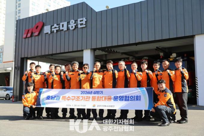 | ±¤ÁÖ±¤¿ª½Ã 119Ư¼ö´ëÀÀ´Ü, 2026³â »ó¹Ý±â È£³²±Ç Ư¼ö±¸Á¶±â°ü ÅëÇÕ´ëÀÀ ¿î¿µÇùÀÇȸ °³ÃÖ ´ëÇü¡¤º¹ÇÕ Æ¯¼öÀç³ ½Å¼Ó¡¤È¿À² ´ëÀÀ È£³²±Ç Ư¼ö±¸Á¶±â°ü ÇùÀÇȸ 5°³ ±â°ü ±¸Á¶±â¹ý¡¤Çù·Â¹æ¾È ³íÀÇ |