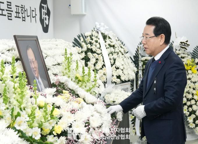 [´ëÇѱâÀÚÇùȸ ±¤ÁÖÀü³²Çùȸ] ±è¿µ·Ï Àü¶ó³²µµÁö»ç´Â 29ÀÏ ¹«¾È ³²¾Ç ¹ÎÁÖ´ç Àü³²µµ´çÀÇ °í ÀÌÇØÂù Àü ±¹¹«ÃѸ® ÇÕµ¿ºÐÇâ¼Ò¸¦ ã¾Æ Á¶¹®, ¹ÎÁÖÁÖÀÇ¿Í ±ÕÇü¹ßÀü¿¡ Çå½ÅÇÑ °íÀÎÀÇ ¶æÀ» À̾î Àü³²¡¤±¤ÁÖ »ó»ý´ëÅëÇÕÀ» ÀÌ·ç°Ú´Ù´Â ÀÇÁö¸¦ ´Ù½Ã ¹àÇû´Ù.