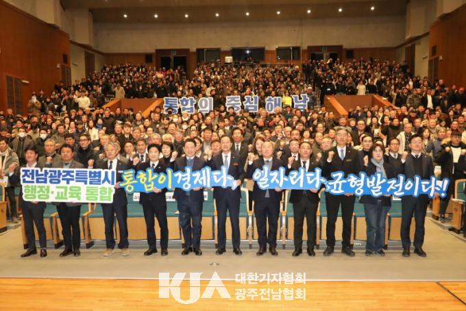 ÇÑÆí 29ÀÏ ÇØ³²¹®È¿¹¼úȸ°ü¿¡¼´Â Àü³²¡¤±¤ÁÖ ÇàÁ¤ÅëÇÕ µµ¹Î °øÃ»È¸°¡ ¿·È´Ù. 700¿©¸íÀÇ ±º¹ÎµéÀÌ °¡µæÂù °¡¿îµ¥ ¿¸° °øÃ»È¸¿¡¼´Â ±è¿µ·Ï Àü³²µµÁö»ç¿Í ±è´ëÁß Àü³²±³À°°¨ÀÌ ÇàÁ¤¡¤±³À° ÅëÇÕÀÇ ÃßÁø °æ°ú¿Í ÀǹÌ, ÇâÈÄ ¹ßÀü¹æÇâ¿¡ ´ëÇØ ÇØ³²±º¹Îµé¿¡°Ô ¼³¸íÇÏ´Â ÀÚ¸®¸¦ °¡Á³´Ù.