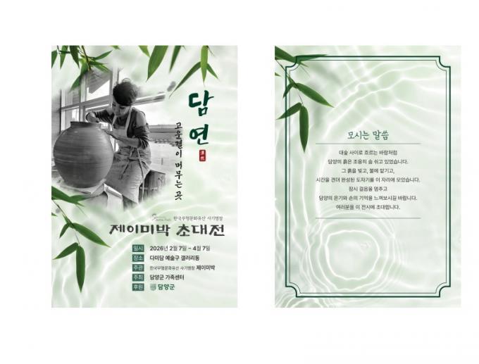 [´ëÇѱâÀÚÇùȸ ´ã¾ç±ºÁöȸ Ź»óÈÆ ±âÀÚ] ´ã¾ç±º°¡Á·¼¾ÅÍ(¼¾ÅÍÀå ÀÌ¿¹ÈÄ)´Â ¿À´Â 2¿ù 7ÀϺÎÅÍ 4¿ù 7ÀϱîÁö 59Àϰ£ ´Ù¹Ì´ã¿¹¼ú±¸ ¹®È­Àü½Ã°ü(´ã¾çÀ¾ ´ãÁÖ4±æ 24-27)¿¡¼­ Çѱ¹ ¹«Çü¹®È­À¯»ê »ç±â ¸íÀå ¡®Á¦ÀÌ¹Ì ¹Ú¡®ÀÇ µµÀÚ±â ÃÊ´ëÀü ¡®´ã¿¬(ÓÁæÔ)¡¯À» °³ÃÖÇÑ´Ù°í 28ÀÏ ¹àÇû´Ù.