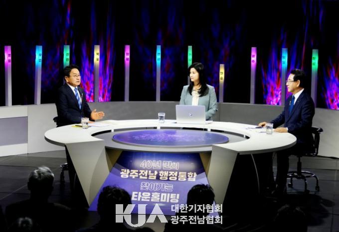 ±¤ÁÖ±¤¿ª½Ã(½ÃÀå °±âÁ¤)¿Í Àü¶ó³²µµ(Áö»ç ±è¿µ·Ï)´Â 10ÀÏ ±¤ÁÖMBC °ø°³È¦¿¡¼ ½Ã¡¤µµ¹Î 150¿©¸íÀÌ Âü¼®ÇÑ °¡¿îµ¥ ¡®±¤ÁÖ¡¤Àü³² ÇàÁ¤ÅëÇÕ ±¤ÁÖ±Ç Å¸¿îȦ¹ÌÆÃ¡¯À» ¿°í °ø°³ Åä·ÐÀ» ÁøÇàÇß´Ù.