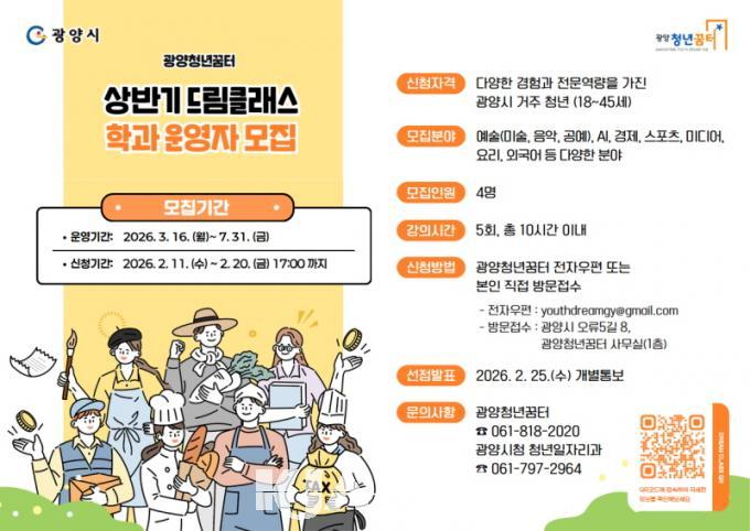 | ±¤¾çû³â²ÞÅÍ, 2026 »ó¹Ý±â µå¸²Å¬·¡½º ¿î¿µÀÚ ¸ðÁý û³â ¼ö¿äÁ¶»ç °á°ú ¹Ý¿µÇØ »ó¹Ý±â 4°³ °Á ¾ö¼± ¿î¿µ |