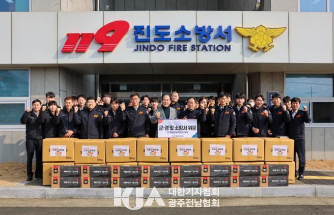 [´ëÇѱâÀÚÇùȸ Áøµµ±ºÁöȸ ¹Ú¿ëÁØ ±âÀÚ] Áøµµ±º ÅëÇÕ¹æÀ§ÇùÀÇȸ(ÀÇÀå ±èÈñ¼ö)°¡ ¹ÎÁ· °íÀ¯ÀÇ ¸íÀýÀÎ ¼³À» ¸Â¾Æ ±ººÎ´ë¿Í ¼Ò¹æ¼¸¦ ¹æ¹®ÇØ, À§¹®Ç°À¸·Î ÁøµµÀÇ Æ¯»ê¹°À» Àü´ÞÇϸç À§¹®Çß´Ù.