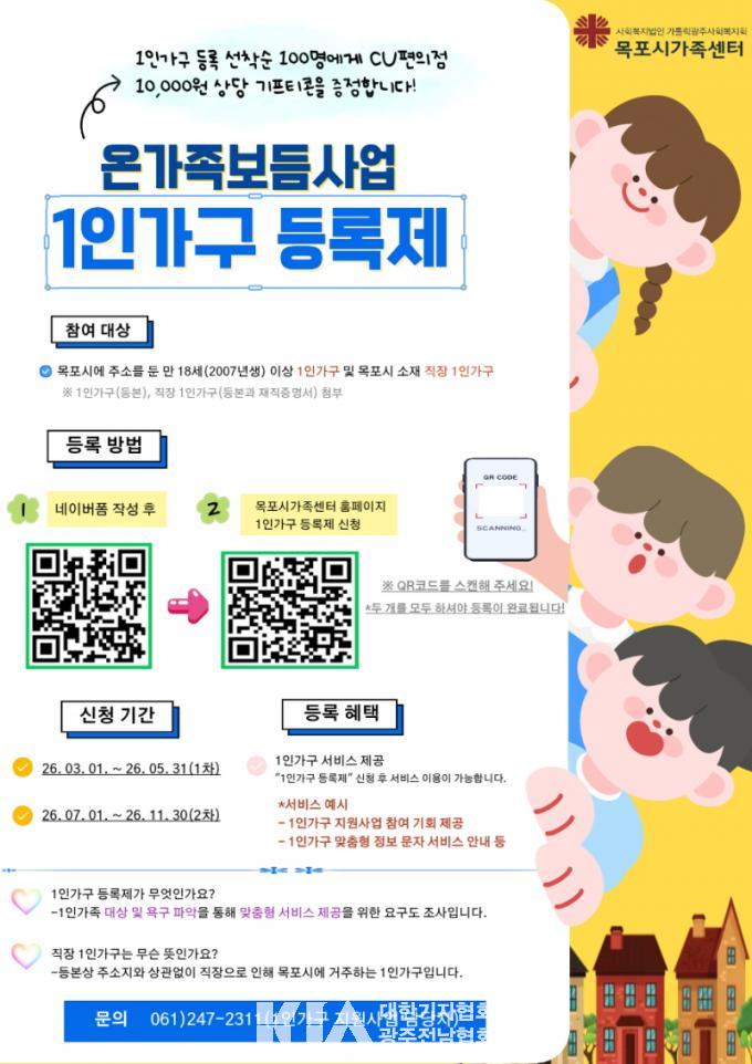 ÇÑÆí, ¸ñÆ÷½Ã°¡Á·¼¾Åʹ ã¾Æ°¡´Â »ó´ã¼Ò ¿î¿µ µî ÇöÀå Áß½É È«º¸¸¦ º´ÇàÇØ 1Àΰ¡±¸ÀÇ Âü¿© Á¢±Ù¼ºÀ» ³ôÀÏ ¹æÄ§ÀÌ´Ù. 1Àΰ¡±¸ µî·Ï ¹× ÇÁ·Î±×·¥ ½Åû ¹®ÀÇ´Â ¸ñÆ÷½Ã°¡Á·¼¾ÅÍ 1Àΰ¡±¸ Áö¿ø»ç¾÷ ´ã´ç(061-247-2311)À¸·Î ÇÏ¸é µÈ´Ù.
