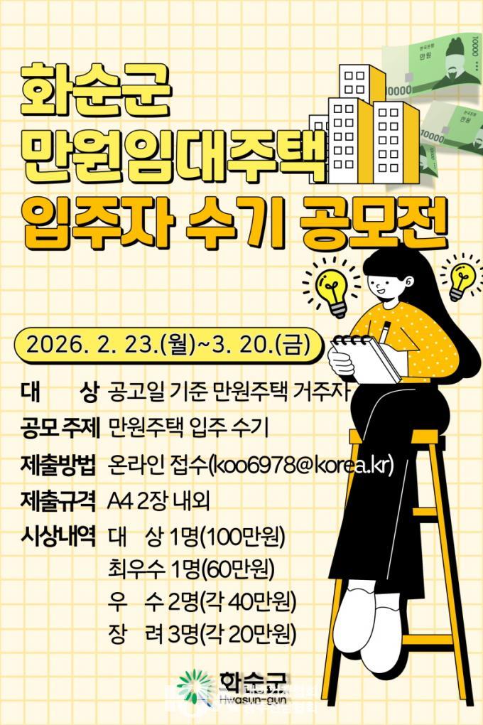 | ȼø±º, ¸¸¿øÀÓ´ëÁÖÅà ÀÔÁÖÀÚ ¼ö±â °ø¸ðÀü °³ÃÖ 2¿ù 23ÀÏ~3¿ù 20ÀÏ Á¢¼ö... ¡°¿©·¯ºÐÀÇ À̾߱Ⱑ Á¤Ã¥ÀÌ µË´Ï´Ù.¡± |