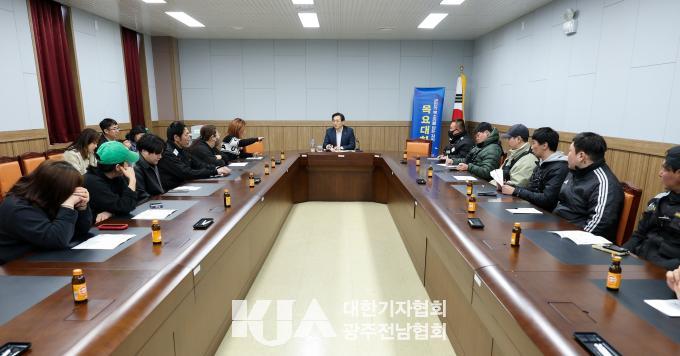 [´ëÇѱâÀÚÇùȸ ¿µ¾Ï±ºÁöȸ] ¿µ¾Ï±ºÀÌ 20ÀÏ »ïÈ£À¾ÇàÁ¤º¹Áö¼¾ÅÍ¿¡¼ ¡®¼ÒÅëÀÇ Ã¢À» ¿©´Â ½Ã°£, ¸ñ¿ä ´ëÈ¡¯¸¦ ¿¾î ¹è´Þ´ëÇà±â»ç µî ¹è´Þ¾÷ Á¾»çÀÚµéÀÇ ¾Ö·Î»çÇ×À» µè°í, ¾ÈÁ¤Àû ±Ù¹« ȯ°æ Á¶¼ºÀ» À§ÇØ ´Ù¾çÇÑ À̾߱⸦ ³ª´³´Ù.