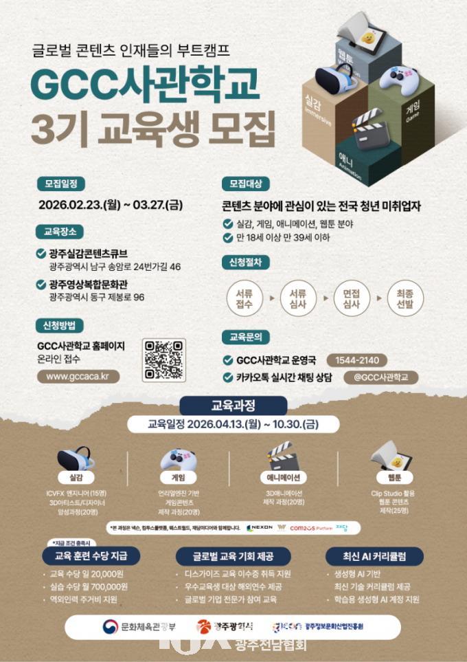 | ±¤ÁÖ±¤¿ª½Ã, Á¦3±â GCC»ç°üÇб³ ±³À°»ý ¸ðÁý 3¿ù27ÀϱîÁö 3±â ¼±¹ßÇØ ¹®ÈÄÜÅÙÃ÷»ê¾÷ ¼±µµ Àü¹®Àη ¾ç¼º |