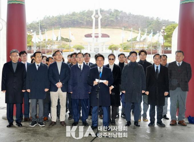 °±âÁ¤ ½ÃÀå µî ±¤ÁÖ±¤¿ª½Ã °£ºÎµé°ú °ø°ø±â°üÀåµéÀº 2ÀÏ ºÏ±¸ ±¹¸³5¡¤18¹ÎÁÖ¹¦Áö¸¦ Âü¹èÇÑ µÚ, ¹ÎÁÖÀǹ® ¾Õ¿¡¼ ÅëÇÕÆ¯º°¹ý ±¹È¸ Åë°ú ȯ¿µ ÀÔÀå¹®À» ¹ßÇ¥Çß´Ù.