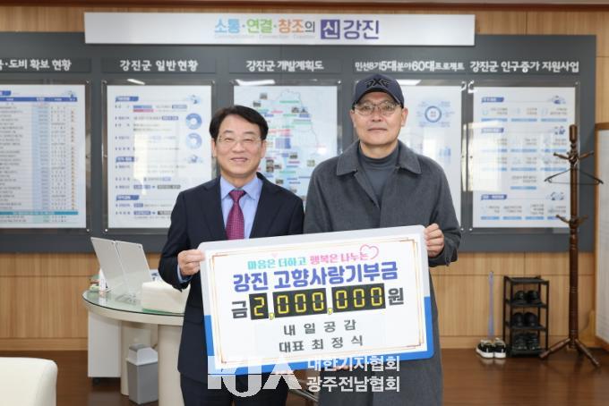 °Áø±ºÀº Áö³ 4ÀÏ ÃÖÁ¤½Ä ´ëÇ¥°¡ °Áø °íÇâ»ç¶û±âºÎ±Ý 2¹é¸¸ ¿øÀ» ±âŹÇß´Ù°í ¹àÇû´Ù.