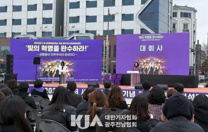 [´ëÇѱâÀÚÇùȸ ±¤ÁÖÀü³²Çùȸ] Àü¶ó³²µµ´Â ¡®3¡¤8 ¼¼°è ¿©¼ºÀÇ ³¯¡¯À» ¾ÕµÎ°í 6ÀÏ ¸ñÆ÷ Æòȱ¤Àå¿¡¼ Á¦17ȸ Àü³²¿©¼º´ëȸ¸¦ ¼ºÈ²¸®¿¡ ¸¶ÃÆ´Ù°í ¹àÇû´Ù.