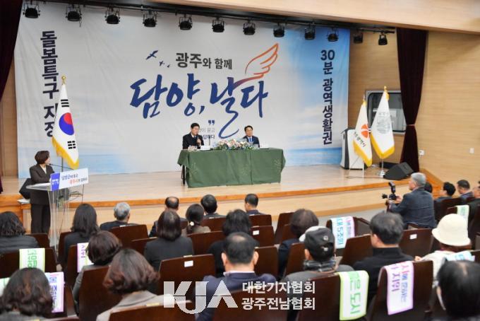 À̳¯ Çà»ç¿¡´Â °±âÁ¤ ±¤ÁÖ½ÃÀå°ú Á¤Ã¶¿ø ´ã¾ç±º¼ö¸¦ ºñ·ÔÇØ ±º¹Î 250¿© ¸íÀÌ Âü¼®ÇØ ÇàÁ¤ÅëÇÕ¿¡ µû¸¥ ´ã¾çÀÇ ¹ßÀü ¹æÇâ°ú Áö¿ª º¯È¿¡ ´ëÇØ ÀǰßÀ» ³ª´©°í ´Ù¾çÇÑ Áö¿ª Çö¾È¿¡ ´ëÇÑ °ÇÀÇ»çÇ×À» Á¦½ÃÇß´Ù.
