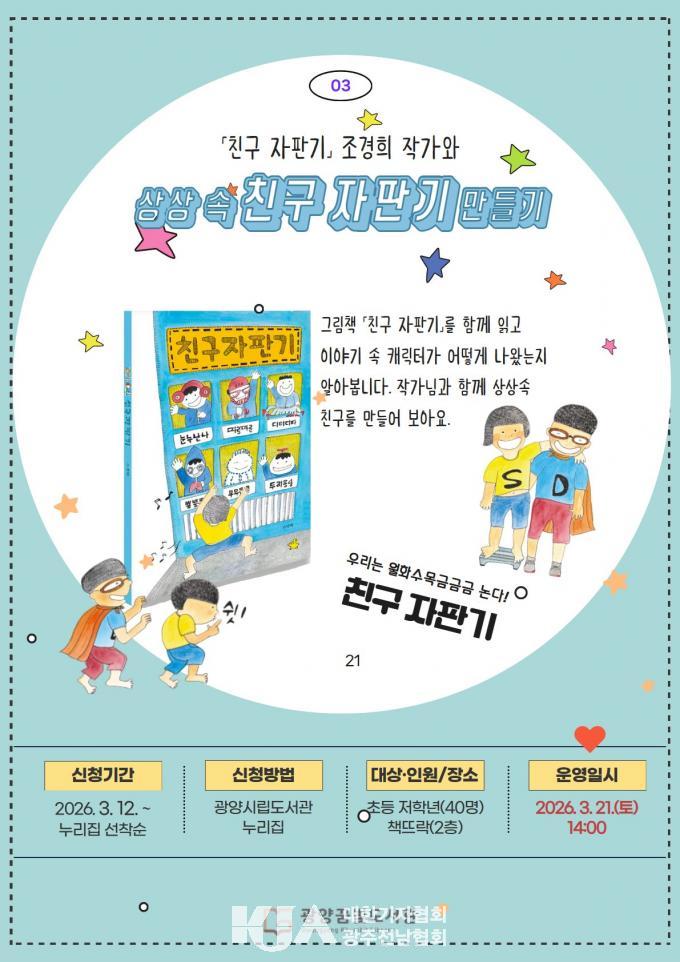 | ±¤¾ç²Þºûµµ¼°ü, ¡¸Á¶°æÈñ ±×¸²Ã¥ ÀÛ°¡ °¿¬¡¹ °³ÃÖ ±×¸²Ã¥ ¡®Ä£±¸ ÀÚÆÇ±â¡¯ °¿¬ ¹× µ¶ÈÄ È°µ¿À¸·Î ¾î¸°ÀÌ µ¶¼ Èï¹Ì ³ô¿© |
