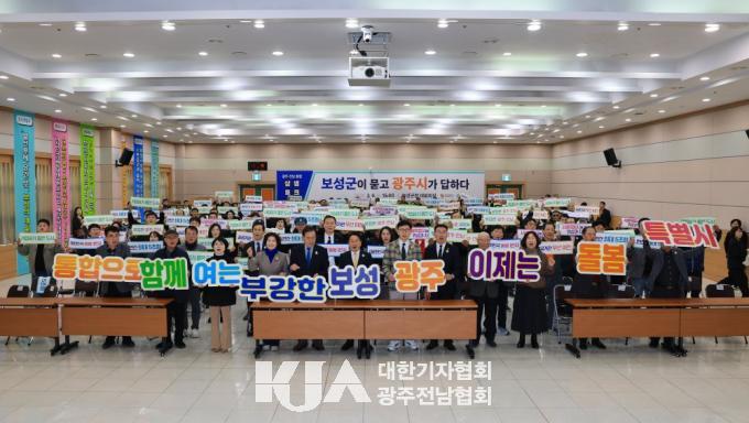 | "º¸¼º±ºÀÌ ¹¯°í ±¤Áֽð¡ ´äÇß´Ù" Àü³²¡¤±¤ÁÖ ÇàÁ¤ÅëÇÕ »ó»ýÅäÅ© ¼º·á °±âÁ¤ ±¤ÁÖ½ÃÀå, ±èö¿ì º¸¼º±º¼ö µî 200¿© ¸í Âü¼® |