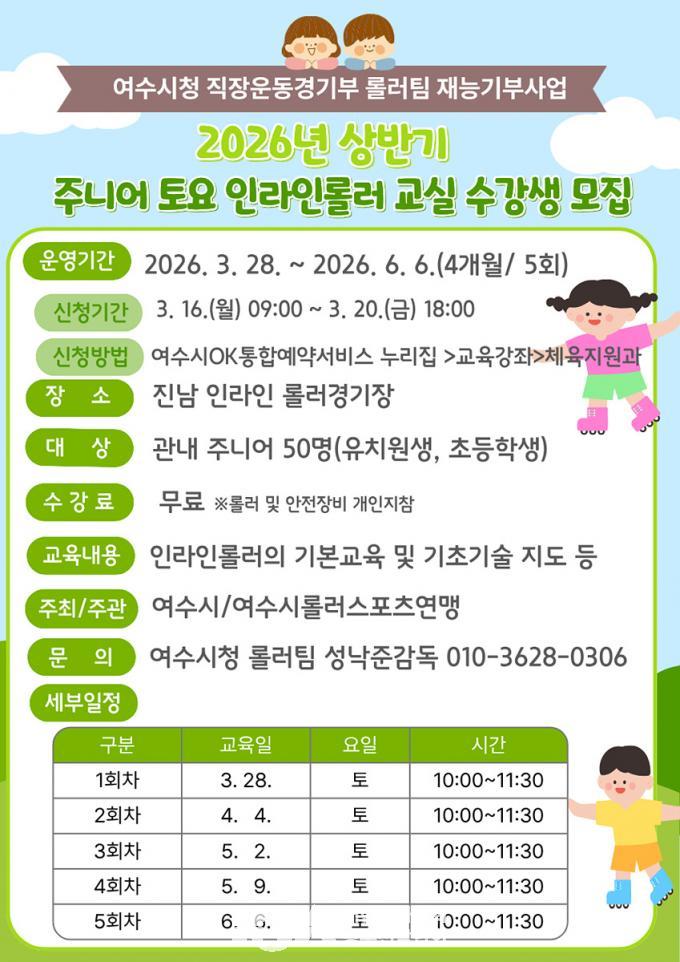 [´ëÇѱâÀÚÇùȸ ¿©¼ö½ÃÁöȸ] ¿©¼ö½Ã°¡ Áö¿ª À¯¼Ò³âÀ» ´ë»óÀ¸·Î ¡®2026³â »ó¹Ý±â ÁִϾî Åä¿ä ÀζóÀηѷ¯ ±³½Ç¡¯À» ¿î¿µÇÏ°í ¿À´Â 3¿ù 16ÀϺÎÅÍ 20ÀϱîÁö ¼ö°­»ýÀ» ¼±Âø¼ø ¸ðÁýÇÑ´Ù.