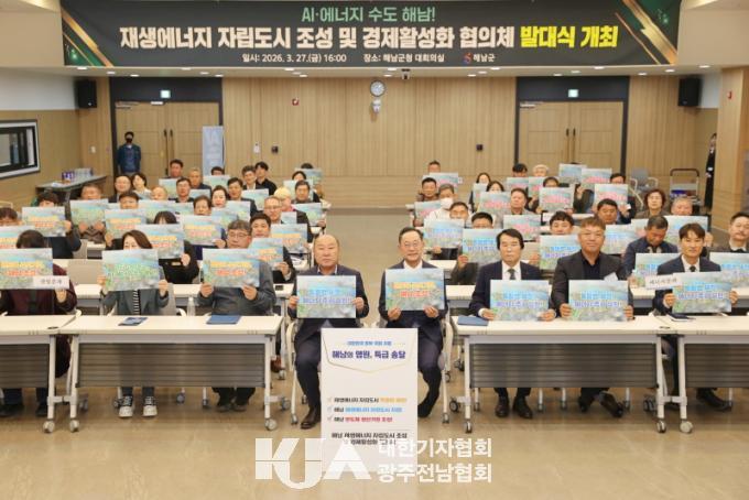 ÇØ³²±ºÀº 27ÀÏ ±ºÃ» ´ëȸÀǽǿ¡¼¡®Çس² Àç»ý¿¡³ÊÁö ÀÚ¸³µµ½Ã Á¶¼º ¹× °æÁ¦È°¼ºÈ ÇùÀÇü¡¯¹ß´ë½ÄÀ» °³ÃÖÇϰí, Àç»ý¿¡³ÊÁö Á᫐ ¹Ì·¡»ê¾÷ ±â¹Ý ±¸ÃàÀ» À§ÇÑ ¹Î°ü Çù·Â °Å¹ö³Í½º¸¦ °ø½Ä Ãâ¹ü½ÃÄ×´Ù.