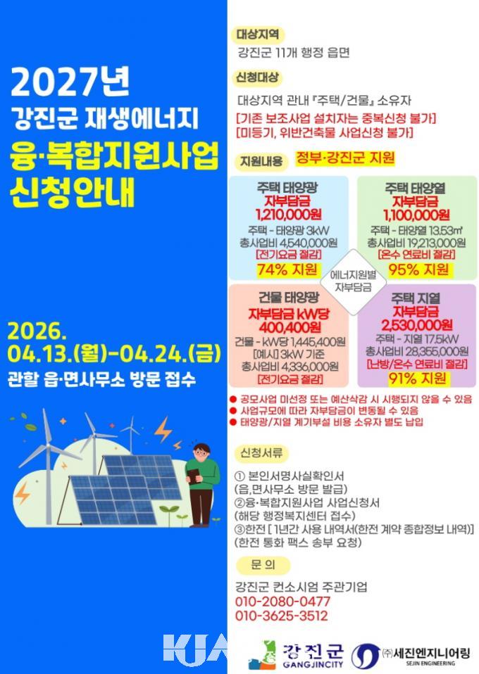 2027³â ½ÅÀç»ý¿¡³ÊÁö À¶º¹ÇÕÁö¿ø»ç¾÷ °ø¸ð °á°ú´Â ±âÈÄ¿¡³ÊÁöȯ°æºÎ¿Í Çѱ¹¿¡³ÊÁö°ø´ÜÀÇ Æò°¡¸¦ ÅëÇØ 11¿ù Áß ¹ßÇ¥µÉ ¿¹Á¤À̸ç, ¼±Á¤µÉ °æ¿ì 2027³â 3¿ùºÎÅÍ »ç¾÷ÀÌ ÃßÁøµÈ´Ù.