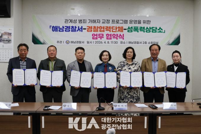 [´ëÇѱâÀÚÇùȸ ÇØ³²±ºÁöȸ ¹Ú±¤ÀÏ ±âÀÚ] ÇØ³²°æÂû¼­(¼­Àå ¹Ú¹Ì¿µ)´Â 2026. 4. 8. ÇØ³²°æÂû¼­ 2Ãþ ¼ÒȸÀǽǿ¡¼­ 5°³ °æÂûÇù·Â´Üü ¹× ÇØ³²¼ºÆø·Â»ó´ã¼Ò¿Í ÇÔ²² °ü°è¼º ¹üÁË °¡ÇØÀÚ »ó´ã¡¤Ä¡·á ÇÁ·Î±×·¥ ¿î¿µÀ» À§ÇÑ ¾÷¹« Çù¾àÀ» ü°áÇß´Ù°í ¹àÇû´Ù.