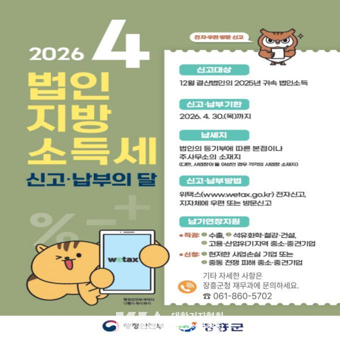 [´ëÇѱâÀÚÇùȸ ÀåÈﱺÁöȸ Á¤¾ç¼® ±âÀÚ] ÀåÈﱺÀº 4¿ù ÇÑ ´Þ µ¿¾È 2025³â 12¿ù ¸» °á»ê¹ýÀÎÀÇ ¹ýÀμҵ濡 ´ëÇÑ ¹ýÀÎÁö¹æ¼Òµæ¼¼ ÁýÁß ½Å°í¡¤³³ºÎ ±â°£À» ¿î¿µÇÑ´Ù°í 9ÀÏ ¹àÇû´Ù.