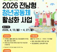 | ³ªÁÖ½Ã, 2026³â ¡®Ã»³â°øµ¿Ã¼ Ȱ¼ºÈ »ç¾÷¡¯ Âü¿©ÆÀ ¸ðÁý 4¿ù 13ÀϺÎÅÍ 27ÀϱîÁö Á¢¼ö¡¦6°³ ÆÀ ¼±¹ß, 600¸¸ ¿ø Áö¿ø |