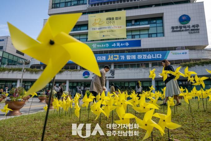 [] ±¤Áֽà ¼­±¸´Â 13ÀÏ ¼¼¿ùÈ£ Âü»ç 12Áֱ⸦ ¸Â¾Æ ¼­±¸Ã» ±¤Àå¿¡ Èñ»ýÀÚµéÀ» Ã߸ðÇÏ´Â ³ë¶õ ¹Ù¶÷°³ºñ 304°³¸¦ ¼³Ä¡Çß´Ù.